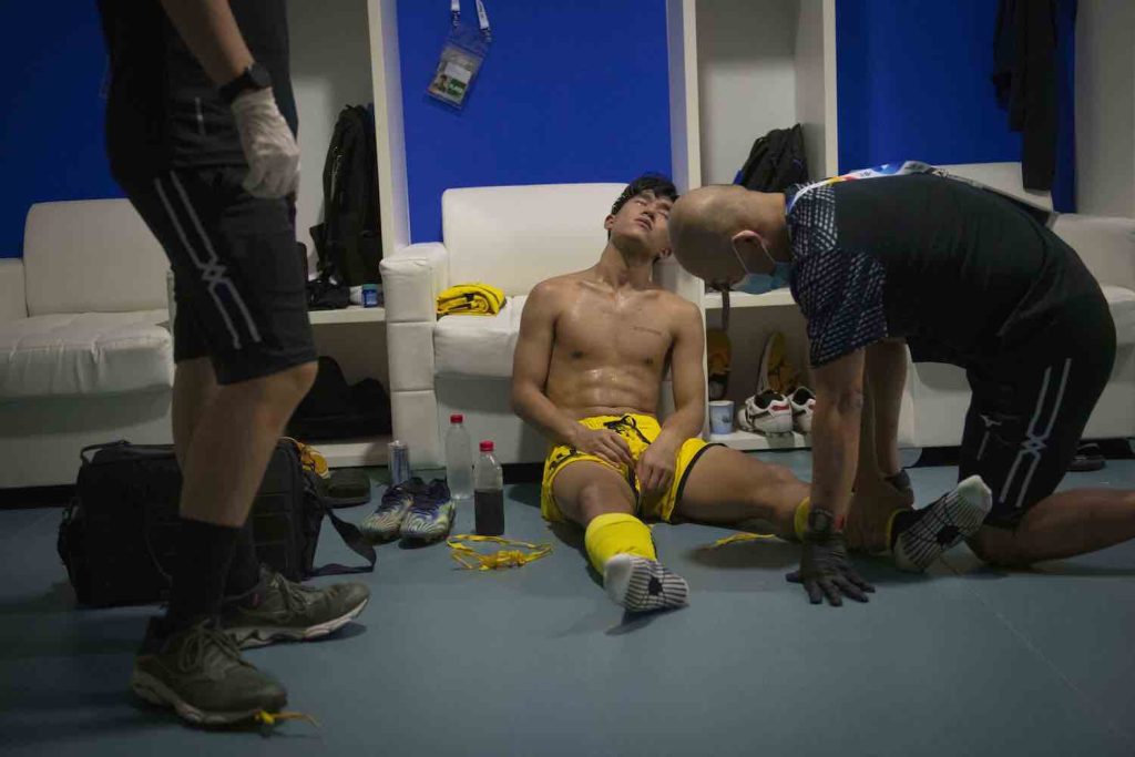 Eyes on the prize – Singapore paddler Feng Tianwei has her full attention on the ball at the Tokyo 2020 Olympic Games on 26 July 2021. 2. Photo by Stanley Cheah Kin Wai Young steeplechase stars in the making. After the announcement of Multi-Ministry Taskforce, Singapore entering Phase 3 of Covid-19 this event organised by Singapore Athletics was probably the first track and field in 2021. These young steeplechase athletes aged between 15 to 21 years old compete in 3000m Men’s Steeplechase at the SA Allcomers’ event. Liu Ziang aged 19 from Dunman High School won the race while his schoolmate Nicholas Wee finished in second position on 26 February 2021. 3. Photo by Andy Chua Meng Hong Dominance in long distance event – Glen Lim in his 1500m freestyle race where he swam into a spot of beautiful sunlight shined onto the pool during SNAG 2021 on 18 March 21 at OCBC Aquatic Centre. This created a unique look of himself swimming alone in his race as he was usually 10m ahead of his opponents. 4. Photo by Shintaro Tay Tampines Rovers midfielder Marc Ryan Tan, 19, with physiotherapist Trevor Lee during half-time in the match against top-flight Korean team Jeonbuk Hyundai Motors, which the Stags lost 4-0 on 4 July 2021 at the Bunyodkor Stadium in Tashkent, Uzbekistan. The Stags became the first local team in six years to compete at the Asian Champion’s League qualifiers. Losing all six matches over 24 days, many had wondered why they chose to compete in Asia’s top football competition. “It is not just about winning but learning,” said head coach Gavin Lee. “Humans will always adapt to their environment. So if your environment is of a higher level, you will either adapt or you will become extinct.” |
