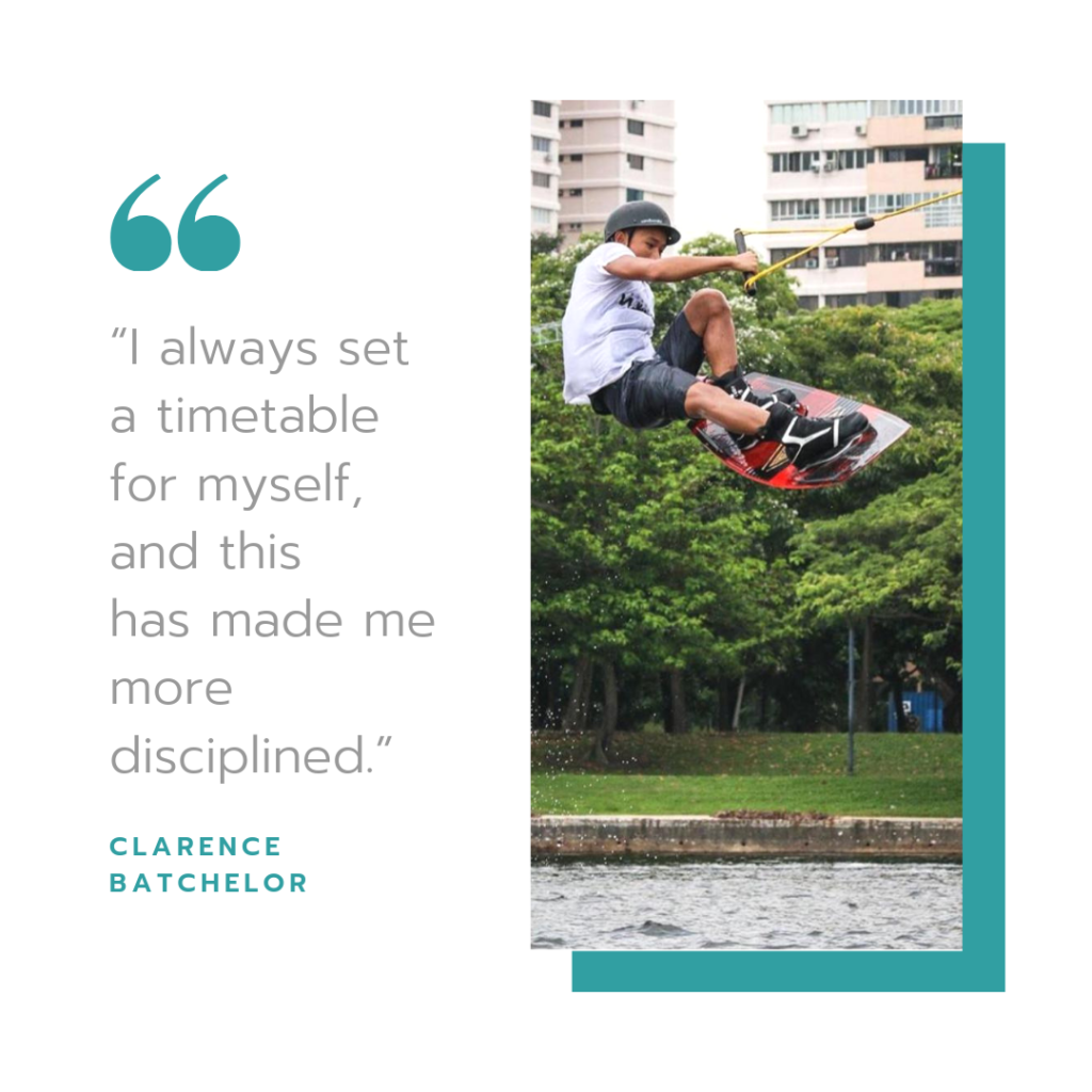 I always set a timetable for myself, and this has made me more disciplined. I also play competitive basketball for my school, which helps to improve my stamina. My teachers are also fully supportive of my wakeboarding journey, telling me to do my best no matter what.